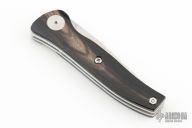 This Auto by Bastide Knives features a satin finished blade, buffalo horn scales and aluminum liners. Comes with original box. Has some light scratches, otherwise excellent condition. Made approximately 2001.