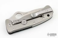 The Lil’ LionSpy’s two-piece handle construction consists of a black G-10 scale and a titanium scale that serves as the basis of the knife’s stout Reeve Integral Lock (R.I.L.) mechanism. Both scales are CNC machined with a series of textured grooves to ensure a positive grip and are joined by an open-backed design that reduces weight and simplifies cleaning. A compact pocket clip attached to the titanium scale supports right-side, tip-up orientation for convenient carry and easy access.