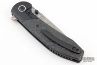 This VBR by Reate is a Mark Varga design, it features a Damasteel blade with flipper. The handle has a black PVD titanium frame with Dark Matter carbon fiber scales, black backspacer and tip up clip. Includes the original box and zipper case.  Excellent condition.