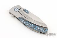 - Handle Material: Bead Blasted Titanium with Black-White-Blue Carbon Fiber