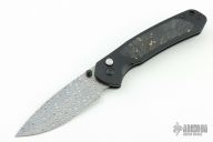We are offering this premium version of the Pyrite with two configurations: CPM S90V with blasted gray titanium or Damascus with blacked out titanium. Both versions feature a stunning gold flake carbon fiber inlay.