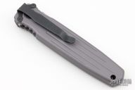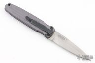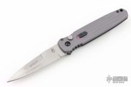 This Covert Auto by Gerber features a stonewashed spear-point blade with a notched thumbrest. Has a gray aluminum handle with a and safety. Black stainless steel clip, tip down clip. Excellent condition. Comes with a zippered case.