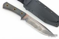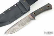 NAME: Apocalypse STEEL: Elmax FINISH: Apocalyptic BLADE LENGTH: 172mm OVERALL LENGTH: 300mm THICKNESS: 6.5 mm HANDLE: BCM SHEATH: Kydex WEIGHT: 398g Comes with original box, sheath and papers. #01618. Has some scratches, otherwise good condition.