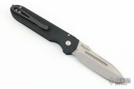 This Invictus by Pro-Tech is a Prometheus Design Werx design, it features a tumbled blade with satin finished flats and a notched thumbrest.  The handle has a black aluminum frame with a black stainless steel tip up clip, lanyard hole at the butt. Push button with red G-10 inlay and a safety.  Comes with original box and papers. Has a couple light scuffs, otherwise excellent condition.