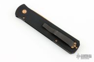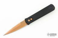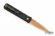 This Godfather by Pro-Tech features a satin rose gold finished blade with false top edge. The handle has a black aluminum handle with black tip up stainless steel clip. Comes with original box and pouch. Has a couple light scuffs and scratches, excellent condition otherwise.