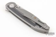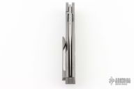 Based off of my Custom slim EDC Fixed Blade Tanto, this slim and easy to carry Tanto flipper has 3-section Carbon Fiber Inlays on the presentation side and large carbon fiber inlay on the lockside because I’m not a fan of bare backsides on a framelock. That’s too boring. The 6AL4V titanium frame is gently contoured for comfort with a prominent finger choil up front by the blade as well as a mini finger choil at the butt-end for your pinky. The titanium backspacer features a hidden lanyard opening sleekly hidden away and the Titanium pocket clip is the same contoured clip[ from the Caladan which completely eliminates hot spots. The flat-faced pivot is radial machined satin finished and is captive so that it won’t spin if you make pivot adjustments from the other side. The S90v steel blade is in an aggressive compound grind which gives excellent cutting & slicing at the main bevel while providing a strong & supported tanto tip. The unique short top swedge ground only up at the tip end of the blade mimics a special look that I only did on a coupe of custom Scaphoids that I made a few years ago. As usual, Tuya has been able to bring my ideas to life in incredible detail with incredible machining and careful finishing and the smoothest/snappiest action. The Scaphoid is a level up in all areas and pushes Tuya into higher end production, more premium knives.