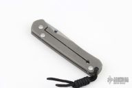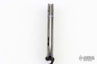 The Umfaan is a smaller version of the Sebenza. Knife features a tumble finished blade and a titanium frame, blue anodized thumb studs. The frame is satin finished with computer generated graphics on the presentation side and a bead blasted finish on the back scale.  Includes a brown leather sheath. Has scuffs/scratches otherwise the knife is in good condition for its age.  Very Rare!