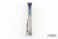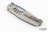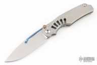 "In Chris’s opinion, Grant and Gavin Hawk are the most innovative design team in the industry. In early 2010, the Hawks showed Chris the concept of a new locking mechanism—one that Chris felt he could engineer and Chris Reeve Knives could manufacture. It has been a lack of capacity not a lack of desire that has precluded Chris Reeve Knives from producing Hawk Designs thus far. It is an honor to present the Ti-Lock. The Ti-Lock mechanism was originally conceived as a means to isolate the lock from the body of the knife, in order to allow more design freedom for handle and frame. Completely ambidextrous, the Ti-Lock allows equal left and right hand use. The Ti-Lock is not an exercise in ultimate lock strength; it is an exercise in mechanical innovation and an illustration of a passion shared by Grant, Gavin and Chris. This passion is also shared by many of our customers—those who buy our knives in appreciation of the design, quality and precision put into our product." The entire frame of the Ti-Lock is composed of tumble finished titanium complimented by a spring titanium tip up carry pocket clip. Has light scuffs/scratches otherwise the knife is in excellent condition.