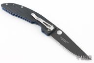 This Benchmade AFCK LLK Limited Edition (126 of 250) linerlock folder has a black DLC M390 Stainless Steel clip point blade with notched thumb rest and thumbhole. Handle is black G10 with anodized titanium liners, blue anodized titanium barrel spacers, lanyard hole, and tip down stainless steel clip. Excellent condition. Comes with original box and papers.
