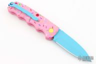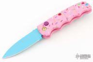 Have you ever been unfortunate enough to have to share a donut? Your plight only gets worse when you find you have to cover your high-speed, low-drag, modified, custom, mirror-edged piece of pocket jewelry in sticky sweetness. What you need is a knife designed from the ground up to go to war with a donut. And although its path to existence was unorthodox, the Dessert Warrior is here! This automatic will snap open before anyone can take more than their half of the donut. The handle is bright pink with sprinkles, and the blade has a candy blue finish, making the knife blend in with the pretty pastries of the shop. Gone are the days of not having the right tool for the job!