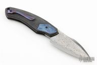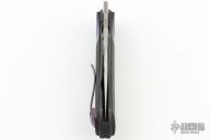 This Davless Knife by David Lespect was produced by Custom Knife Factory. It features a Damasteel blade with swedge and notched thumbrest, front flipper style opening. The handle has Titanium frame, milled carbon fiber scales with DarkTi inlay, and DarkTi tip up clip. Rides on bearings, nice detent, lockup and blade seating. Comes with original pouch and COA dated 01/24 and is one of 10. Excellent Condition.