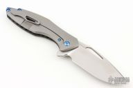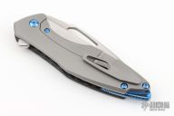 This Arius by Koenig knives features a Brightwashed w/ PF finished blade with thumbhole. The handle has a nicely contoured carbon fiber and titanium frame, titanium tip up clip with hidden screws, and an anodized titanium backspacer and hardware. Has ceramic bearings and a ceramic detent ball. Nice detent, lockup and blade seating. Comes with original box and COA dated November 21, 2023. Excellent condition.