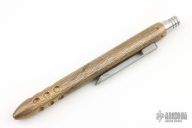 This Pen by Blackside Customs features a brass body with and stonewashed titanium clip with stainless steel click mechanism. Has a bark finish. Includes the original box and papers. Excellent condition.
