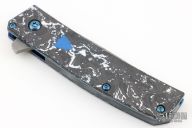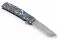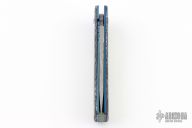 The Benchmade 601-211 Gold Class Tengu is a fully upscale version of the popular 601 flipper. This special edition knife features BiFrost Pattern Damasteel blade, white/black marbled carbon fiber scales, dual blue G-10 inlaid shields, sapphire blue PVD coated stainless steel liners and hardware, Raffir UV reactant SFX Blue Uranium with imbedded brass mesh backspacer. #2554. Includes the original box and papers. Excellent condition.