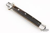 This 13" Swivel Bolster Auto by AB Italy features a plain drop point blade. The handle has stainless steel bolsters, front and rear, Buffalo horn scales, brass liners, stainless spring. Excellent condition.