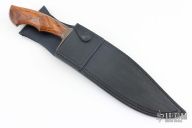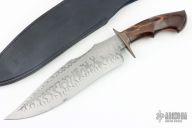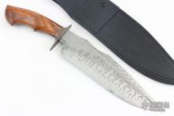 This knife by Jan Hafinec is beautiful. It features a clip point blade (C105 Carbon Steel) with amazing hamon, sharpened top edge, .255" blade stock and 2.336" blade depth, hidden tang construction. The handle has an antiqued bronze guard, ironwood grip, single pin. Comes with a nice black leather sheath. New from maker!