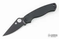 This Paramilitary 2's black finished blade is easily opened with Spyderco's Trademark Round Hole. This knife is an exceptional slicer thanks to its full flat grind, preferred by many for its cutting efficiency. Thanks to the integrated finger choil that extends usable handle length, another common Spyderco design element, the user can choke up on the blade for fine control and really take advantage of the acute point. A four-position clip, allowing for a multitude of carry options completes this KnifeCenter exclusive Spyderco Paramilitary 2.