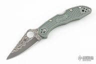 Equally unique is the knife's foliage green fiberglass-reinforced-nylon (FRN) handle, which was historically reserved for a saber-ground, combo edge version of the Delica 4 popular with military personnel. The FRN handle houses the knife's skeletonized stainless steel liners and sturdy lockback mechanism and includes a four-position hourglass pocket clip that supports all possible carry configurations.