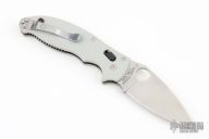 This Spyderco Manix 2 is from a sprint run with CPM CRUWEAR blade steel. Has a satin finished blade, thumbhole and notched thumbrest. The handle is comprised of grey G10 scales over steel liners and backspacer. Lanyard tube in pommel. Includes original box and papers. Stainless steel tip up clip. New condition.