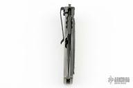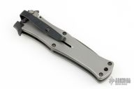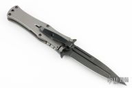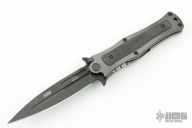This Madd Maxx 4" Assisted Flipper is a Darrel Ralph Design executed by HTM Knifes. It features a black coated bayonet ground blade with false top edge, fullers, dual thumb studs and flipper. The handle is comprised of a bead blasted titanium frame with carbon fiber overlay over barrel spacers. Black coated steel tip down clip and lanyard hole in pommel. Includes padded and zippered case, original box and papers. Excellent condition.