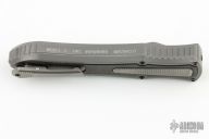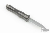 This knife is a Deadlock Model C by Grant and Gavin Hawk. It has a double-edged stonewashed blade. The handle has carbon fiber inlays in the stonewashed titanium frame with a tip down spring clip, titanium. The thumb slide on the handle is also titanium and handle has a titanium overlay.  Grant and Gavin Hawk set out to create a double action OTF with no blade play.... They did it, NO blade play. Includes a padded zippered case. Excellent Condition.
