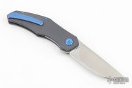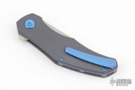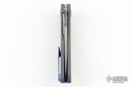 This Renegade by Holt Bladeworks features a polished stonewash finished blade with a notched thumbrest and flipper tab. The handle features a checkered milled titanium frame with anodized tip up pocket clip and hardware. Nice detent, lock up and blade seating. Includes a padded zippered case, authentication card, and stickers.  Excellent condition.
