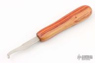 We decided that a gut hook would be simpler than a knife blade, so i set to work, and after a half-hour George saw that i was indeed hopeless, and jumped in to save the project. This is the result. He didn't sign it, isince it was only half his work. But it is nonetheless a genuine Herron Gut Hook."