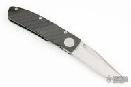 This Model ACC1 is a Walker Design with a satin finished partially serrated blade and carbon fiber scales, titanium liner and stainless steel backspacer. Nice detent, lockup and blade seating. Comes with original box and papers. Excellent condition.
