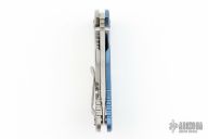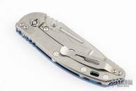 This XM-18 Fullered Spear non-flipper from Rick Hinderer Knives features a 3.5" stonewash finished blade, notched thumbrest, fullers, dual thumbstuds. The handle has a blue anodized and textured titanium scale, and stonewash finished titanium handle/clip. Clip can be mounted for tip up or down carry. Nice lockup, seating, and detent. Comes with original box and extra Tri-Way pivot system hardware. Comes with original G-10 scale and titanium liner. Excellent condition.