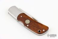 "The beautiful enduring design is the result of a long refinement process focusing on the functional concept of the folding knife. TK3 is a secure, solid folding knife, whose blade, in our new 3G steel, represents the best on the market today. The blade locks in its open position with a well-proven locking mechanism. Ironwood handle material. It's both strong and beautiful." In original sheath and box. Has some light scratches, otherwise excellent condition.