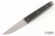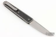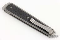 This Symmetry prototype by Richard Rogers features a CTS-XHP drop point blade with notched flipper and double detent system. The handle is comprised of a titanium frame, clip, lanyard bail, and hardware with textured carbon fiber inlays. Comes with COA, extra set of scales, and alternate wharncliffe blade. Excellent condition.