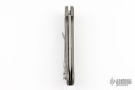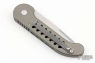 This Slim Seal Auto from Rob Dalton has a two-tone partially serrated blade with false top edge. Handle is black aluminum with milled "V" pattern and tip up titanium clip. #365. Has scuffs and scratches, great condition otherwise.