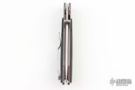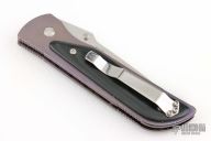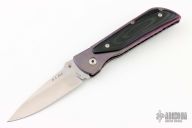 This knife by WR Clark features a hand ground satin finished blade with dual thumbstuds. The handle has an anodized and orange peel finished titanium frame and single titanium liner, black/green G-10 scales and tip up stainless steel clip. Nice detent, lockup and blade seating. Excellent condition.