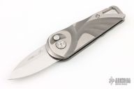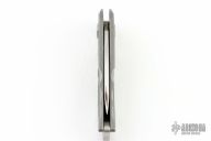 This Mini Auto by Brian Tighe features a mirror polish tumble finish blade with false top edge. The handle has a tumble finish and milled titanium frame with satin finish carabiner style clip. Fast opening, strong lockup. Excellent condition. Comes with a zippered case.