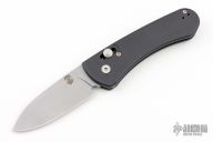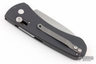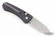 This side opening auto by Rob Dalton features a drop point bead blast blade. The handle has an aluminum frame with thumb-slide opener, tip up bead bladed titanium clip, right or left reversible. #098 on back of handle. Has some light scuffs, excellent condition otherwise.