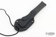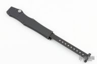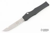 This Halo III by Microtech features a stonewash finished partially serrated blade. The handle has a black aluminum frame with blasted hardware. Comes with kydex neck sheath. Dated 07/2000 and s/n 16109. Excellent condition.