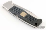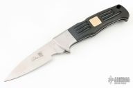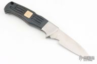 This AL MAR lockback features a satin finished blade. The handle has stainless steel bolsters, textured black Neoprene with the RARE and limited GOLD Al Mar Chop inlaid on both sides, stainless steel liners and backspacer, lanyard hole. Has some scratches, otherwise good condition.