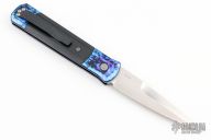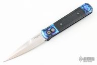 This Godfather Jazz by Pro-Tech Knives features a satin finished spear point blade with false top edge. The handle has a jazz anodized aluminum frame with black G-10 inlays and a tip up stainless steel clip. Comes with original box and papers. Has some light scuffs, excellent condition otherwise.
