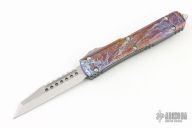 This Ultratech by Microtech Knives features a stonewashed Warhound blade with satin flats and false top edge. The handle has a black aluminum frame with an aftermarket titanium topside.  Tip down blasted stainless steel clip and hardware.  The Titanium topper is from Way of Knife EDC Gearhouse. Comes with original box, papers and the original topper. 10/2022, S/N 678. Excellent condition.