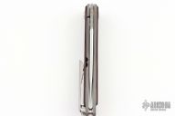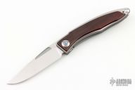 This Mnandi has a satin finished blade with notched thumbrest and nail nick. The handle has a bead blasted and satin finished titanium frame with cocobolo inlays. Titanium clip, tip up carry. Comes in original COA dated October 24, 2006 and tool, and Reeve box. Excellent condition.