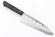 Murray Carter's "Stainless Fukugo-zai Series (SFGZ)" Kitchen Cutlery. Hand forged from stainless carbon laminated steel with a White steel core laminated between SUS410 stainless mild steel for ease of maintenance. This steel affords the keenest possible edge. Features a satin polished blade which shows evidence of forging, riveted handle scales and Murray's renowned sharp edge. The Funayukiis used for general cooking purposes. 172mm cutting edge. Comes with original box. Excellent condition.