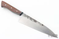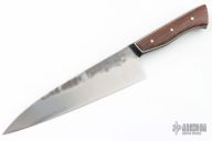 This Muteki Funayuki by Alex Horn features a satin finished blade with full tapered tang construction, .089" blade stock and 1.997" Blade Depth.  The handle has Amazonian Rosewood scales over a black and white G-10 liners. Comes with original box. Excellent condition.