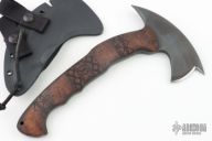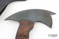 The WK RnD Axe Series is a collaborative design between Master Bladesmith Daniel Winkler and skilled Sayoc Kali martial arts trainer Rafael Kayanan. The handle design provides a standard grip position, as well as a secondary close quarter grip that was developed to emulate the feel of a handgun grip. The optional front spike (6 - 8 month delivery) is a valuable feature in combat usage.