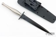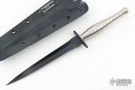 This Fairbairn Sykes Commando Dagger by Medford Knives features a black double edged blade with .251" blade stock and .895" blade depth, hidden tang construction. The handle has a black titanium guard and a satin finished turned titanium grip. Comes with a kydex sheath with TekLok and zippered case. Excellent condition.