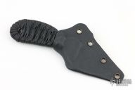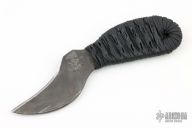 This knife by Shoemaker Blades features a black oxide finished chisel ground blade with .142" blade stock and 1.145" blade depth, hidden tang construction with epoxy soaked cord wrapped handle. Comes with a kydex sheath. Has some scratches, otherwise excellent condition.