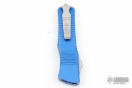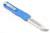 This Combat Troodon OTF automatic features a satin finished D/E blade with standard edges. Blue aluminum handle with a tip down blasted stainless steel clip. Glass breaker. Serial number 37775 and dated 03/2022. Comes with original box and papers. Has a couple light scuffs, otherwise excellent condition.