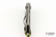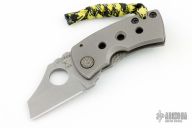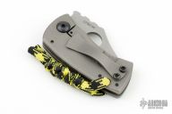 This Killer B framelock by Jonathan McNees features an acid tumble finished blade with notched thumbrest and thumb hole for ease of opening. The handle has an acid tumble titanium frame with a matching clip positioned for tip up carry. Nice detent, blade seating and lockup. Comes with Mcnees Velcro case. Has a couple light scuffs, excellent condition otherwise.