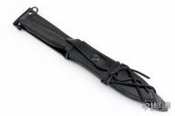 The Mark II is one of the best selling knives of all time. First introduced in 1966, this tactical knife is serialized for collectors. This one has a satin finished hand ground double edged partially serrated blade, .223" blade stock and .958" blade depth, hidden tang construction with a black aluminum handle. This knife is Serial #082734 and was made in 1979. Comes with a black leather sheath. Has some scratches, has been sharpened, otherwise good condition.