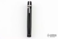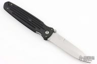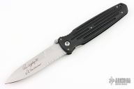 This Applegate Fairbairn Combat Folder by Gerber has a bead blasted stainless steel partially serrated spear point blade with dual thumb studs and false top edge. Handle is black contoured polymer with single stainless steel liner and lanyard hole. Comes with original nylon belt sheath. Excellent condition.