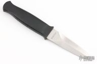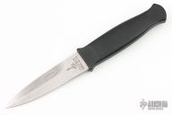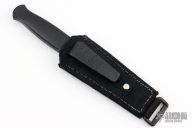This Gerber Guardian is an R.W. Loveless design and features a satin finish double edged blade with .145" blade stock and .823" blade depth, hidden tang construction. Black aluminum textured handle with "Guardian" stamped on side. Knife includes a black nylon sheath. #G5286S on the blade. Has a some light scratches, otherwise excellent condition.